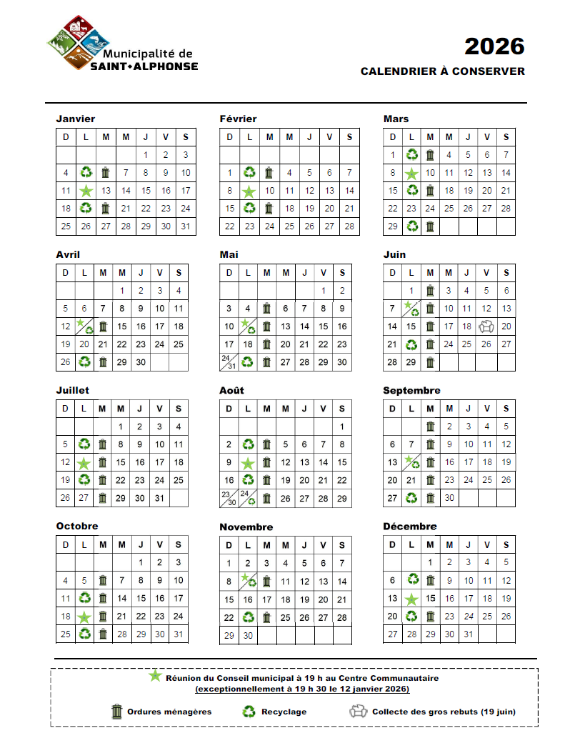 Calendrier des collectes pour 2026